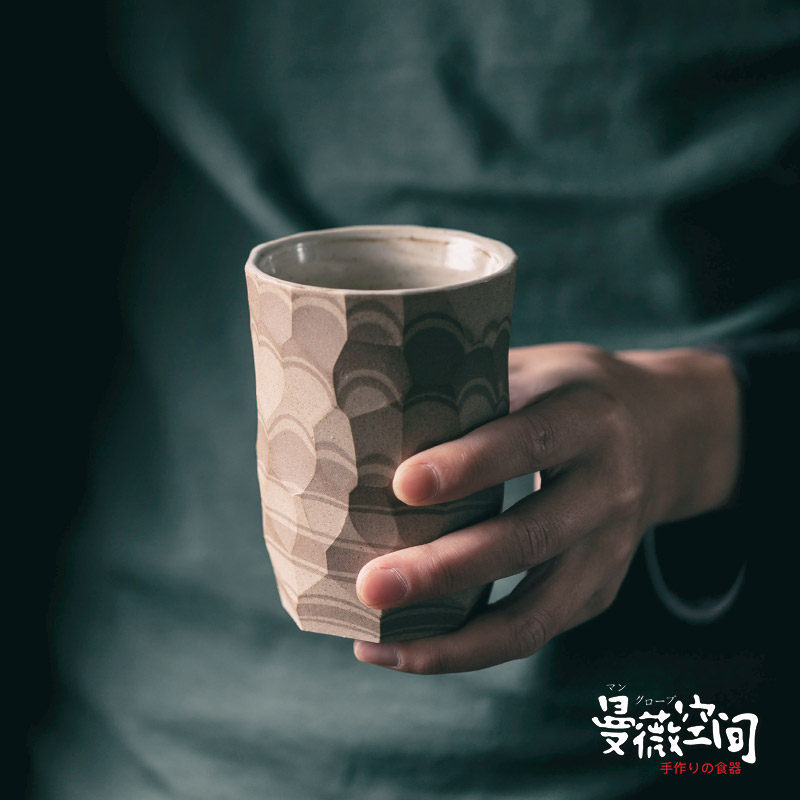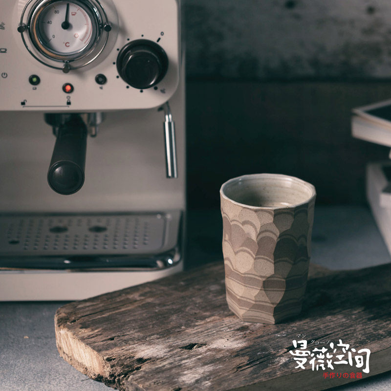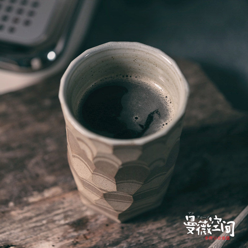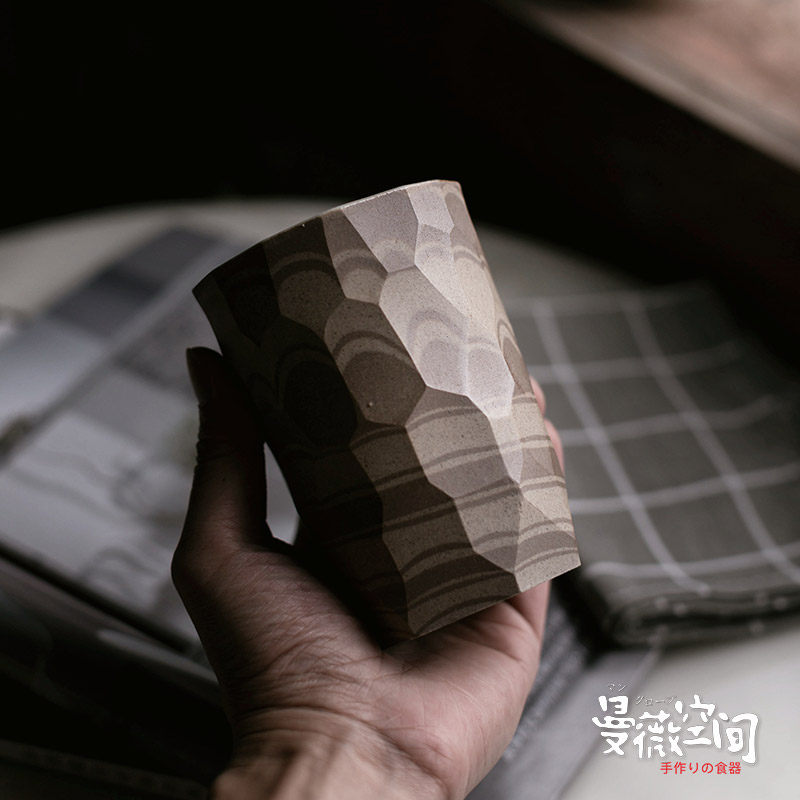 Handmade Grinding Espresso Coffee Cup Mocarday Style Firewood Burning Ins Ceramic Coarse Pottery Cups Retro Wind Knife Cut Tattooed Glasses