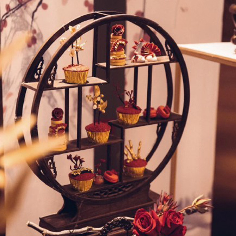 Round piece of Hanglu Hulu Dragon Side Dragon Bottle Seven Step Tree - Peach Fin Wood Sculpture Box - Tang Herb small base jade rack two pieces of high drum