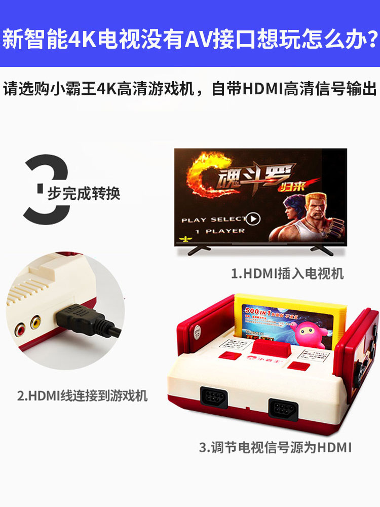The 4K cable version has built-in 121 games + dual gamepads