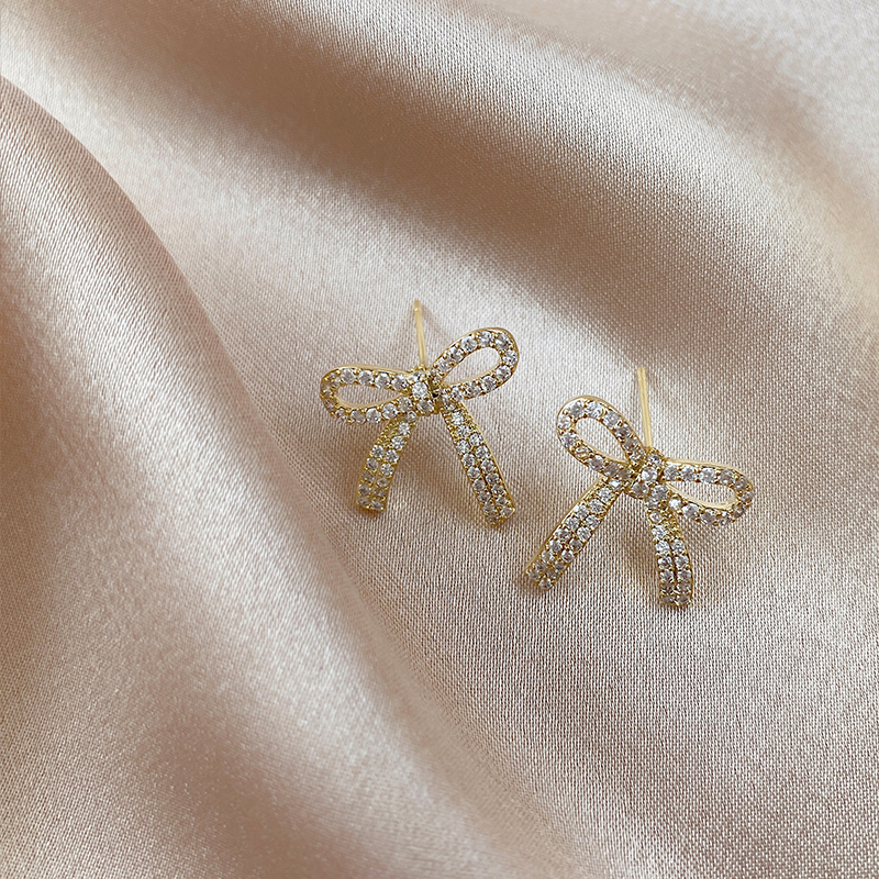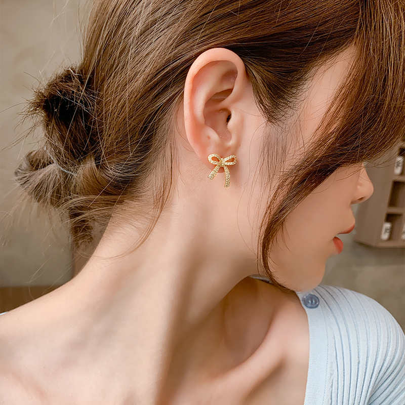 Minimalist light luxury bow earrings temperament web celebrity small girl heart earrings women delicate earrings S925 sterling silver needle