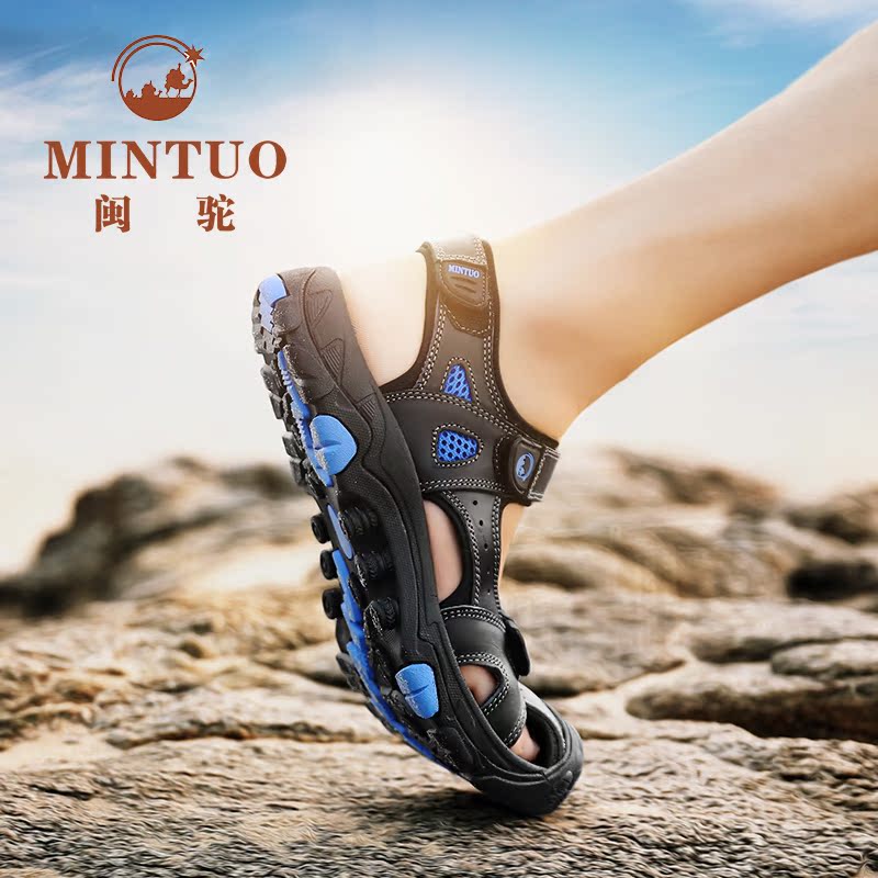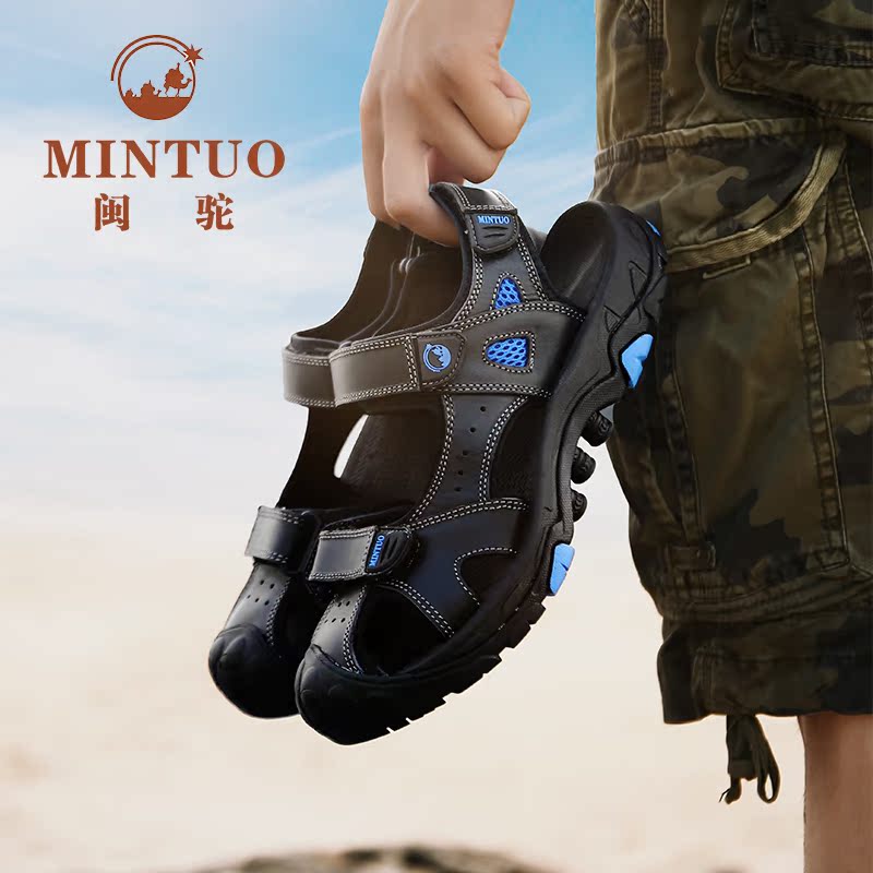 Medium and large children's leather sandals boys 10 Baotou leather 12 summer non-slip 15-year-old youth students 13 Korean version of the trend