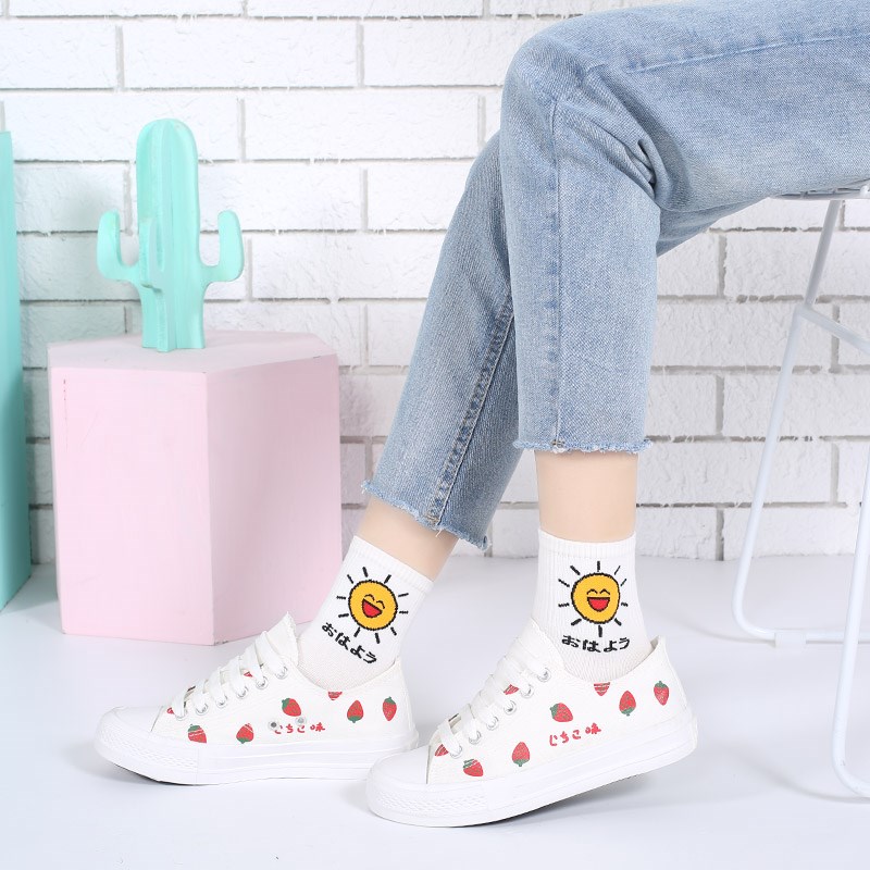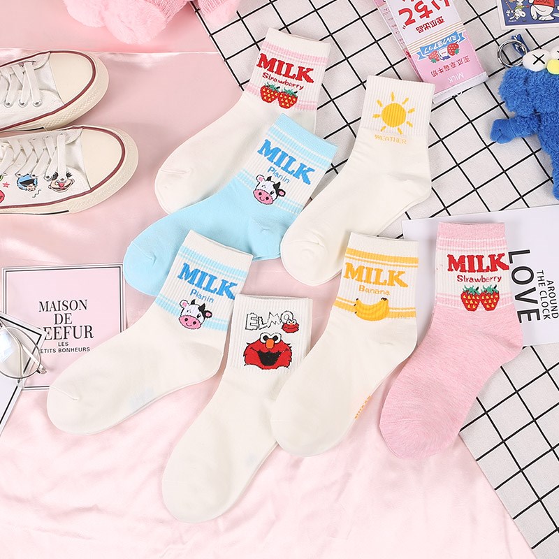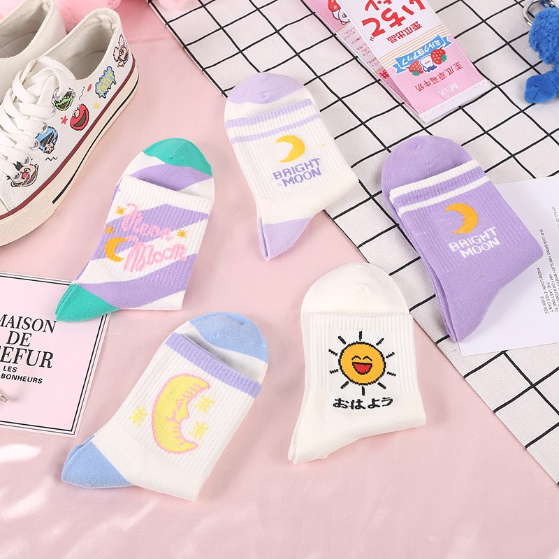 Socks female purple tube summer thin Joker Japanese personality College wind moon socks Korean version of strawberry socks