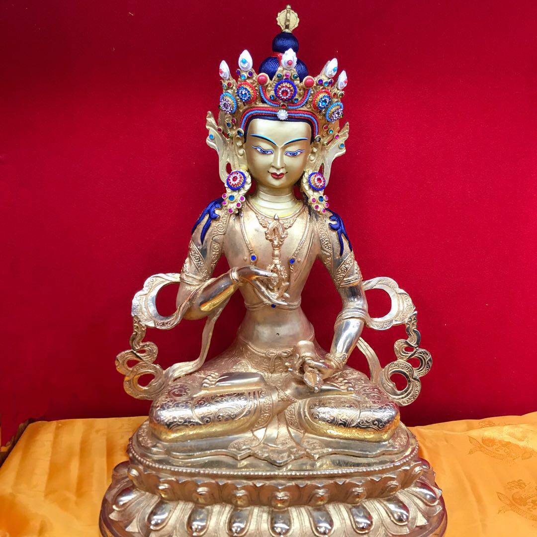 Hide and spread dense pure brass Buddha statue King Kong sauntresses home Liver pure gold brushed gold open face gold silk Buddha clothes high 45cm