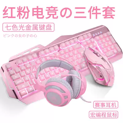 Siders keyboard mouse set headset laptop laptop game eating chicken wired external device girl mechanical feel