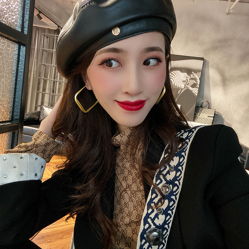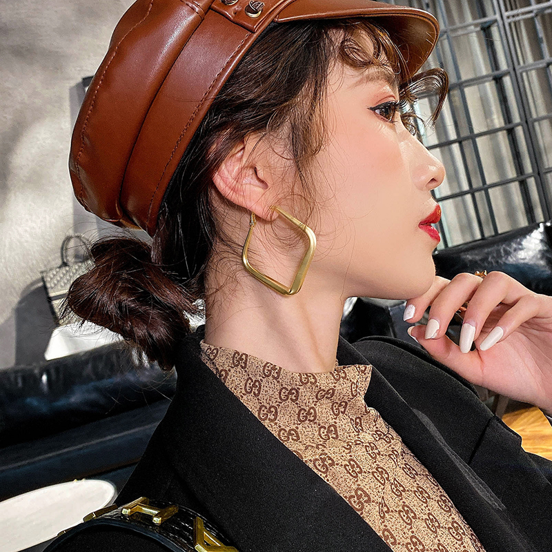 S925 silver needle metal irregular retro port wind earrings personality exaggerated earrings women's winter new net red earrings