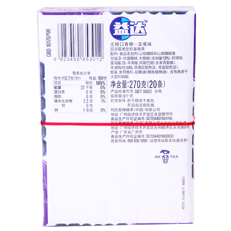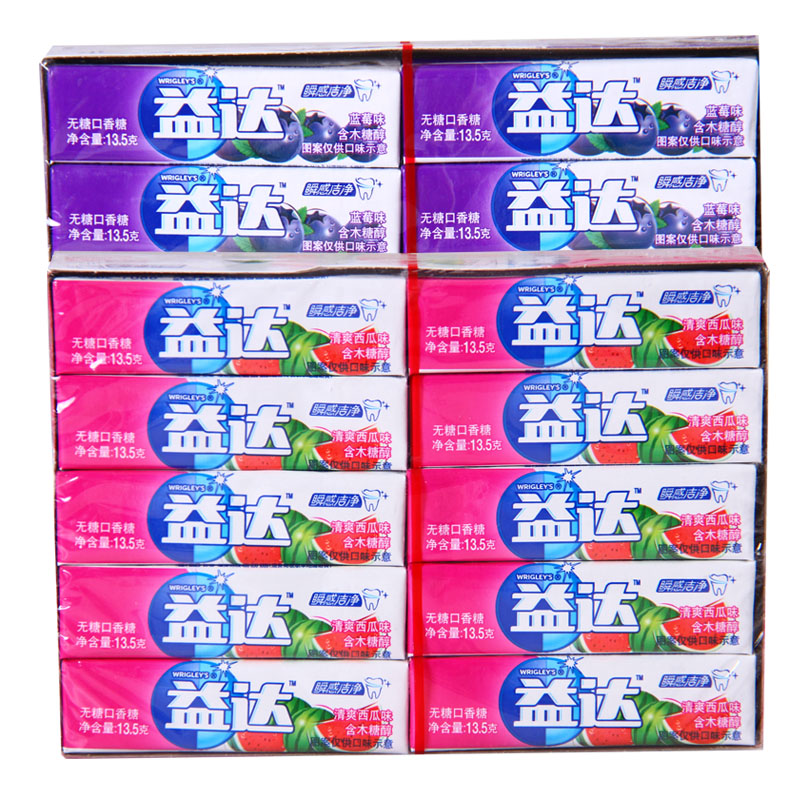 Yida Xylitol Chewing Gum 5 Pieces 13.5gx10 Watermelon Blueberry Flavor Fresh Breath Snack