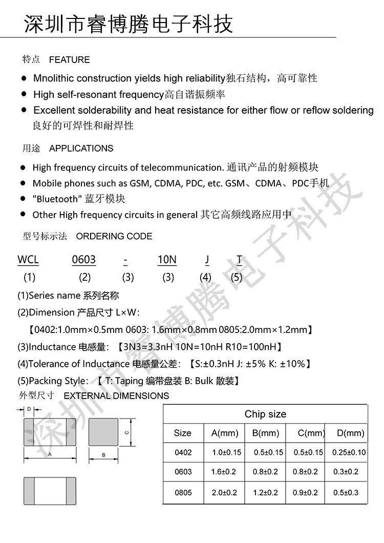 Patch ceramic high-frequency laminated inductance 0402 0603 0805 2 2 3 3 4 7 10 22 47NH