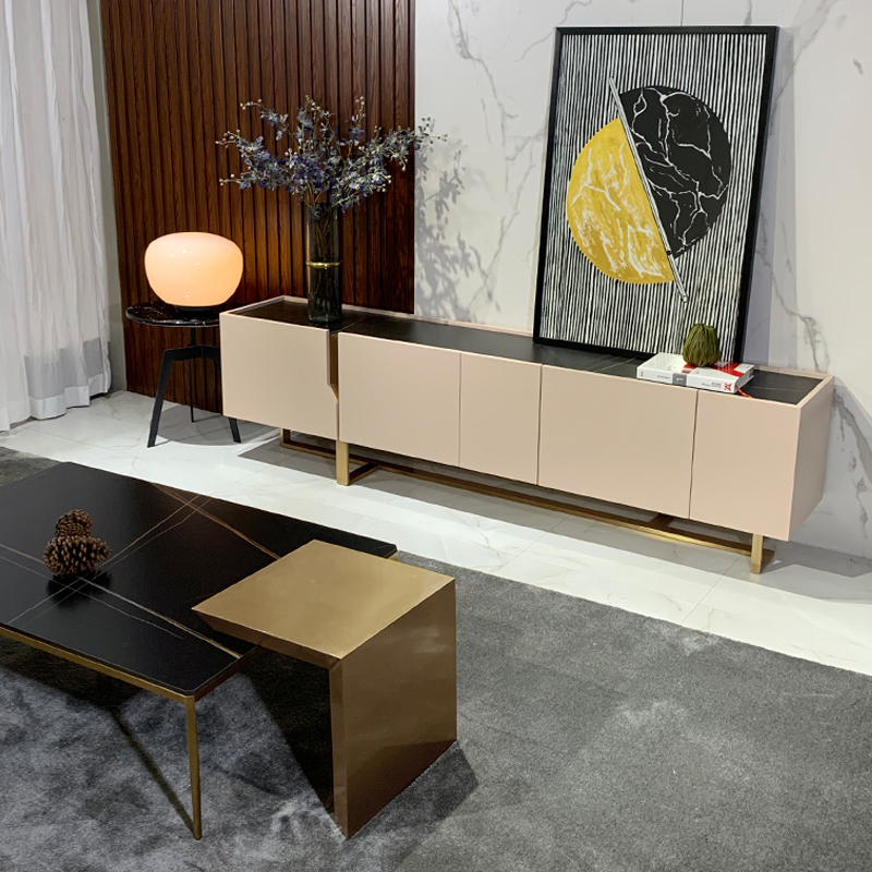 Italian minimalist rock board light luxury TV cabinet coffee table combination modern simple small apartment high living room Nordic style
