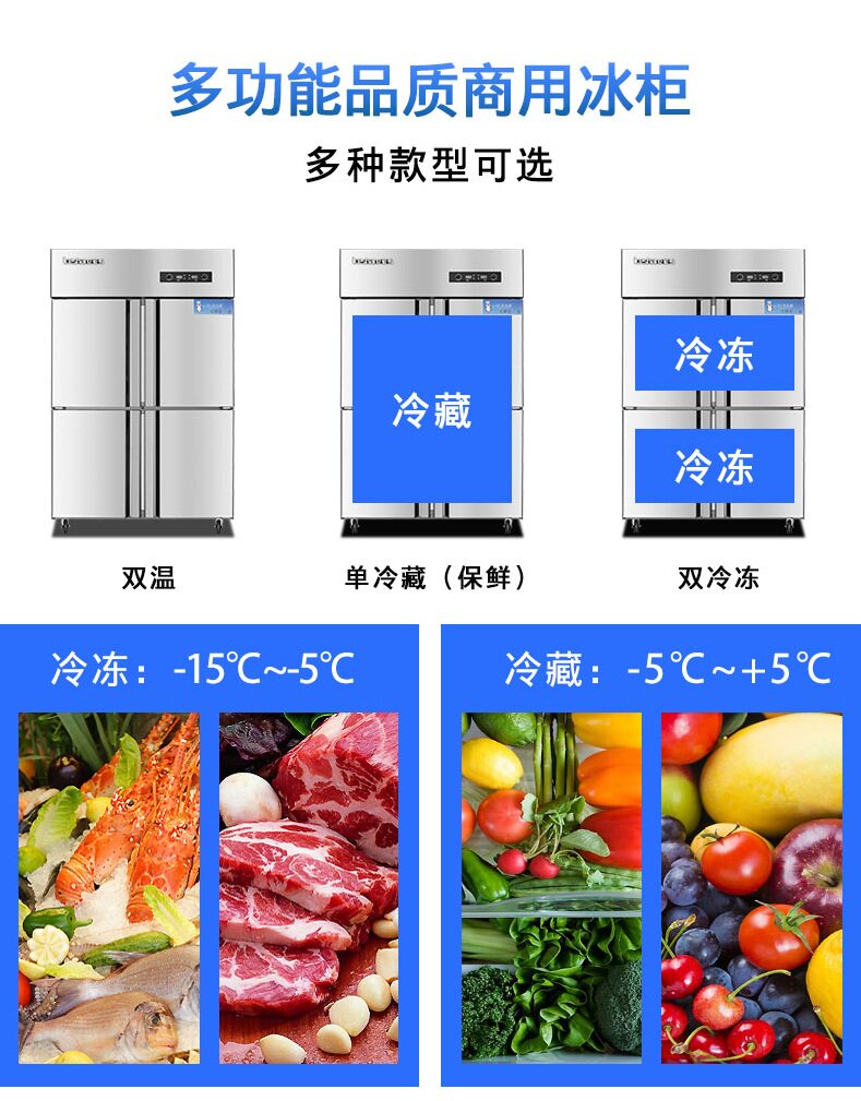 Love Snow Four Doors Fridge Commercial Large Capacity Frozen Refrigerated Double Warm Display Cabinet Kitchen Stainless Steel Vertical Freezer