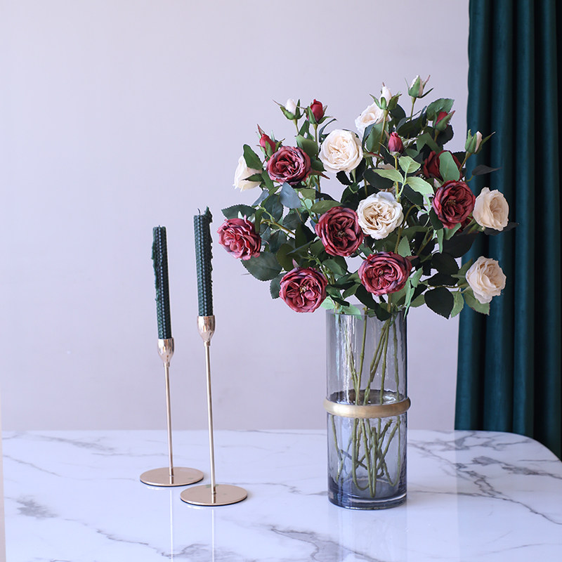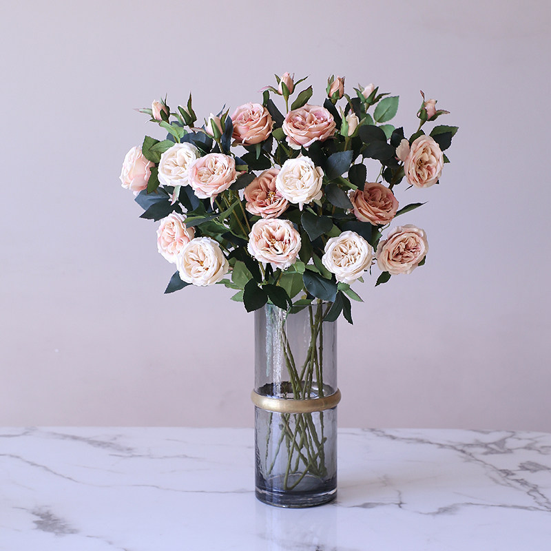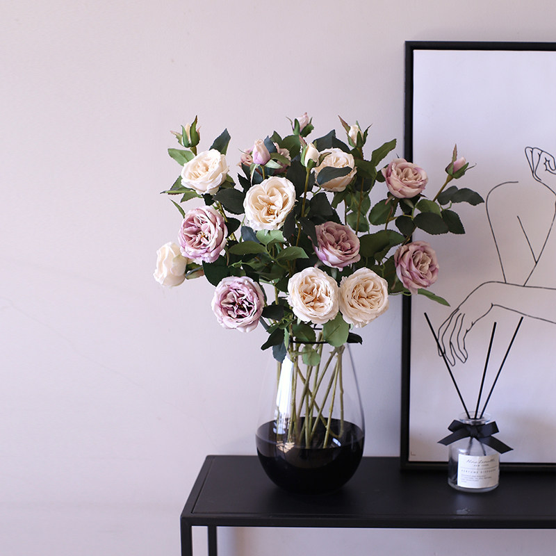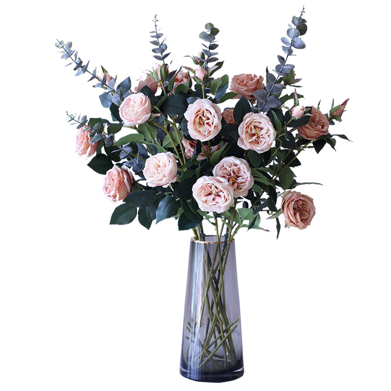 European white, one branch of European powder, one branch of European purple, one branch of champagne powder, one branch of black red, one branch of soft gum eucalyptus leaves, 2 branches bouquet A (European white 2 European powder 3 champagne powder 3) bouquet B (European powder*4 champagne powder*4