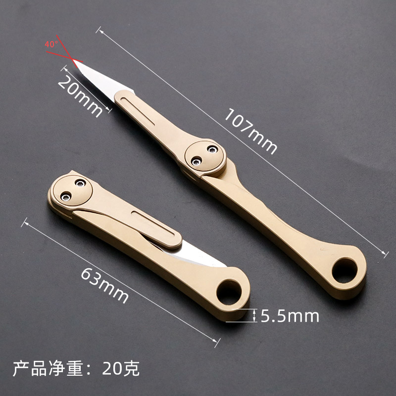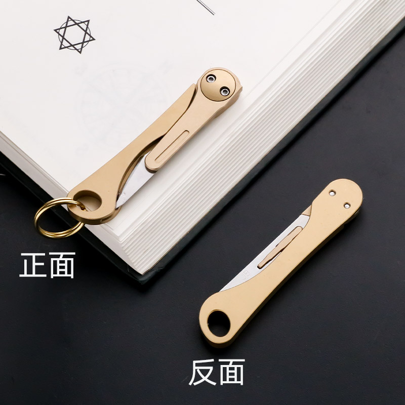 Brass Paper Cutting Mini Knife Portable Outdoor Folding Knife Multifunctional Keychain Open Express Knife Cute Personality Pocket