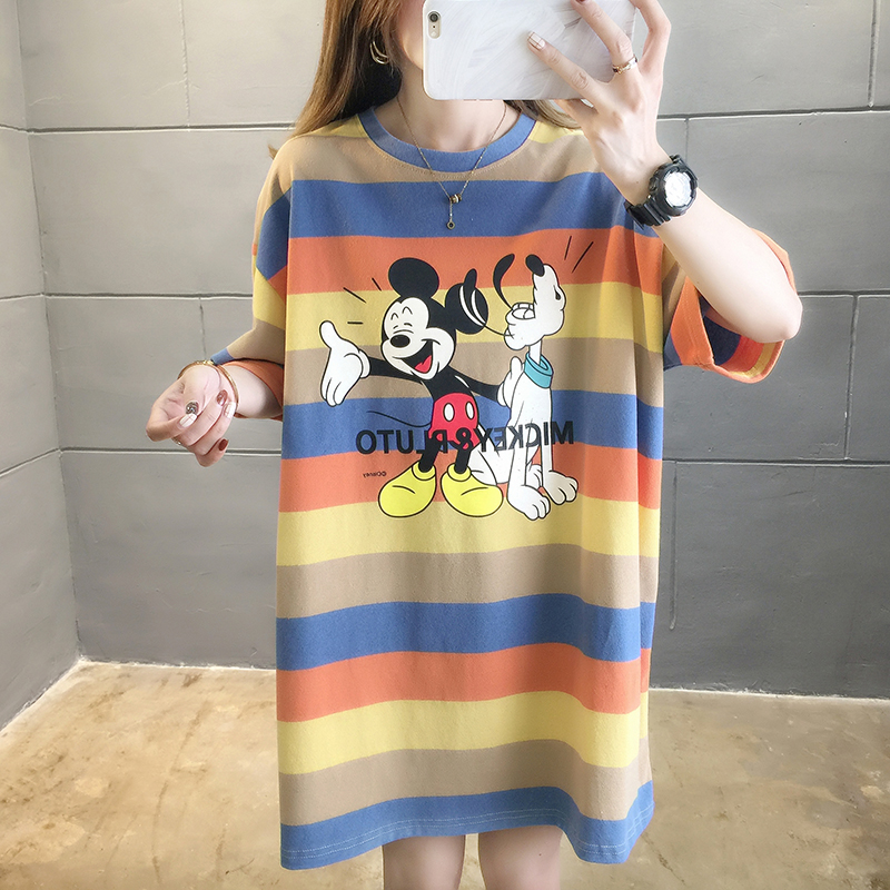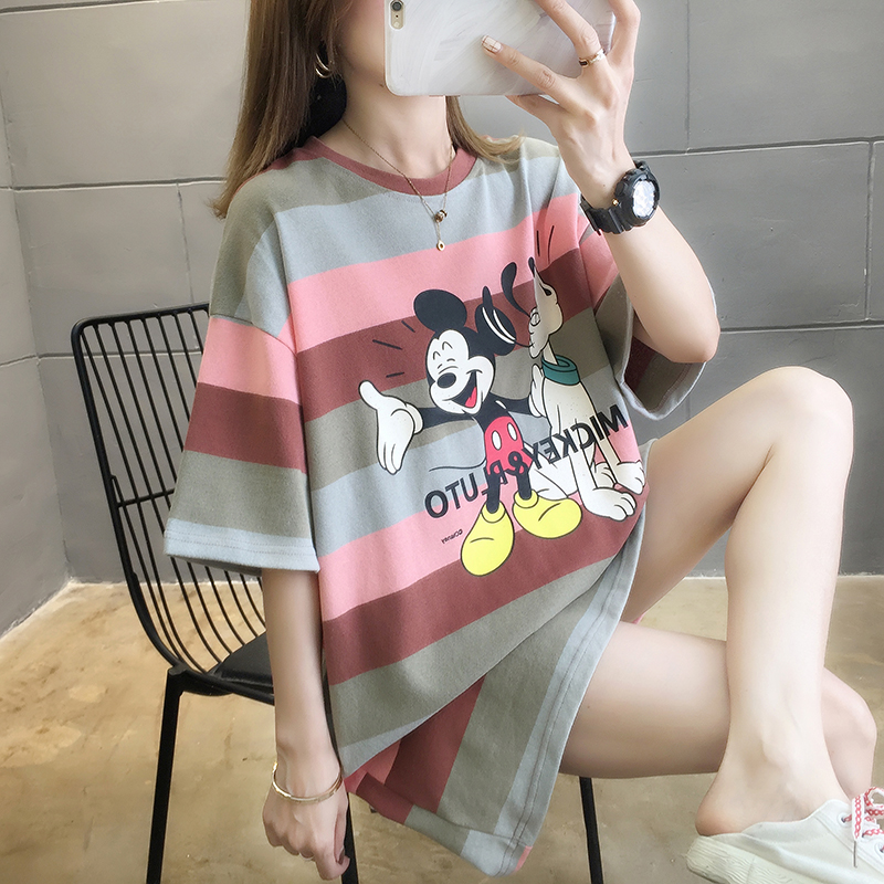 Pregnant woman short sleeve T-shirt female loose medium long version short summer half sleeve spring summer hit bottom blouse Korean version summer dress Chauma