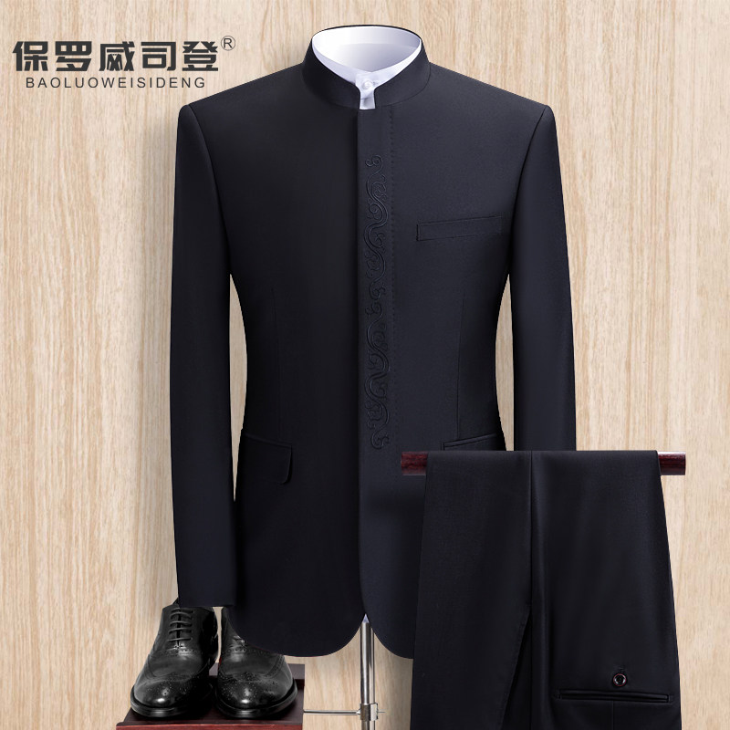 Zhongshan Clothing Men's Suit Embroidery Xiangyun Chinese Collar Western Clothing Middle Aged Dad Clothes Wedding Gown Wedding Dresses The Same Dinner Party