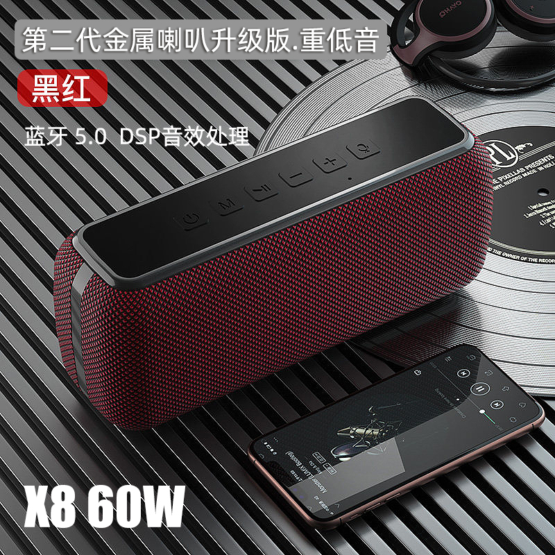 60W High Power Germany Overweight Low Tone Gun Wireless Bluetooth Sound Fever HIFI Big Volume Home Sound X8