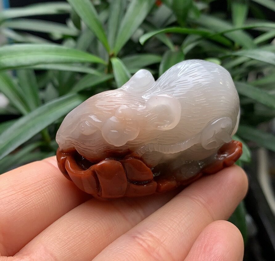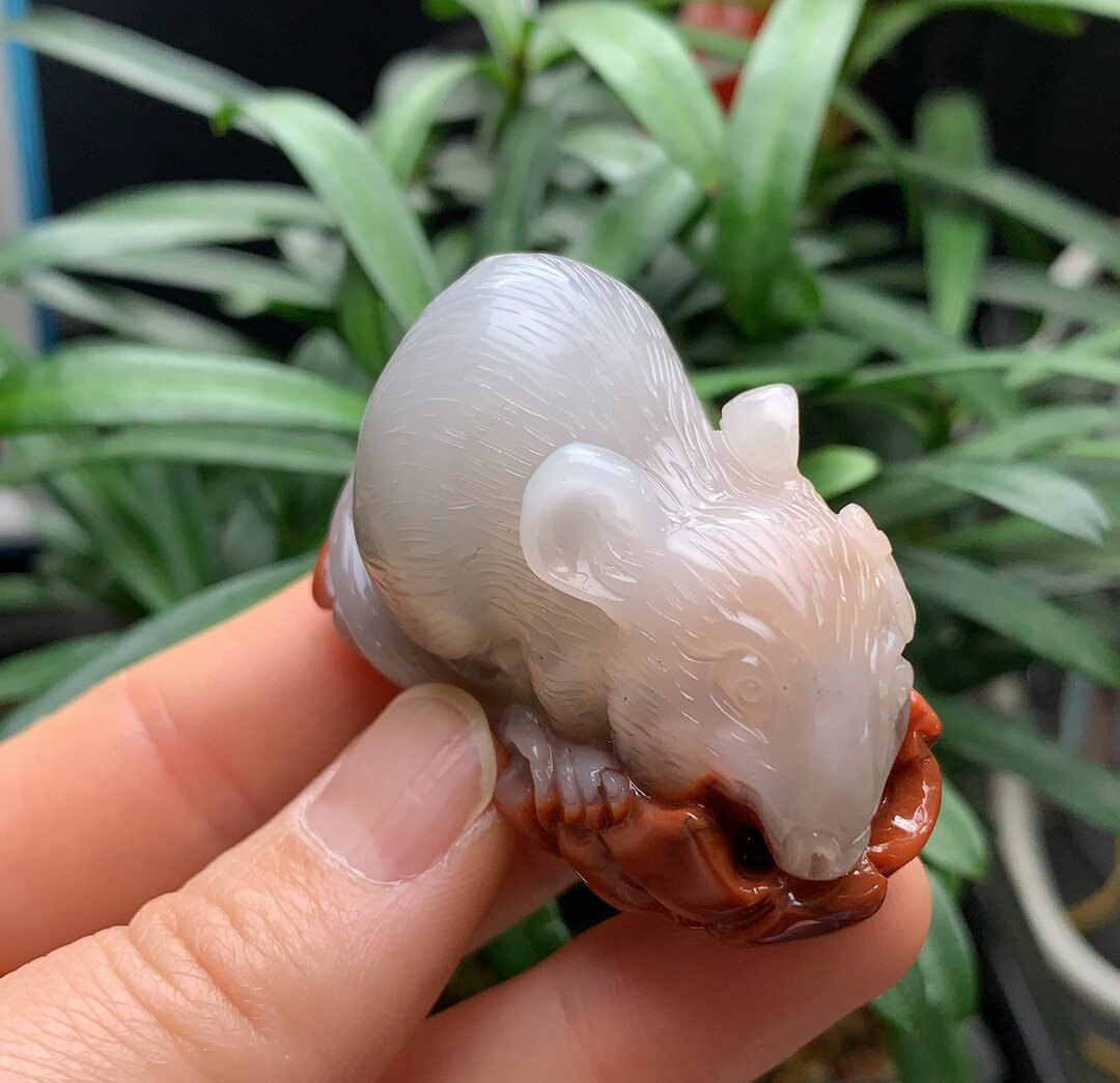 Yang Yujia Yunnan natural yellow dragon jade three-dimensional carved zodiac lucky rat hand play piece certificate flower chant gift box