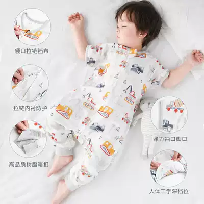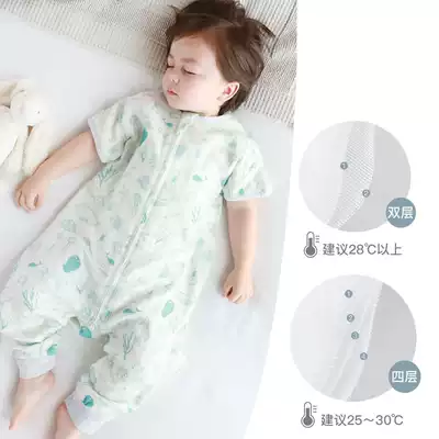 Griny baby gauze sleeping bag summer thin baby 2 layer bamboo cotton short sleeve split leg children air-conditioned room Anti-kicking quilt
