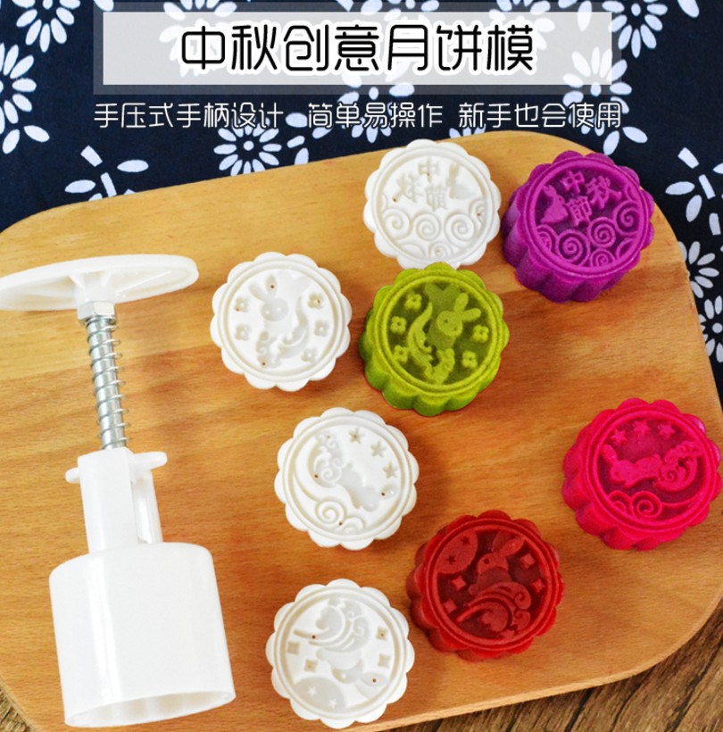 Factory Wholesale 50g Round Mid-Autumn Festival Cartoon Moon Rabbit Mooncake Mold Mung Bean Cake Rabbit Biscuit Mold 4 Pieces Set
