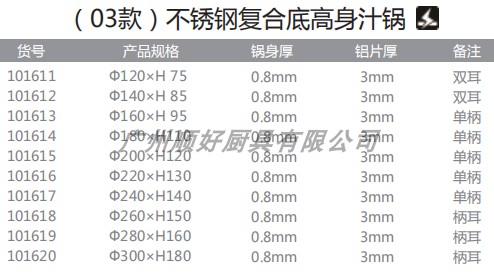 Jiangmen Dongfang 03 stainless steel composite bottom tall sauce pot single handle pot milk pot soup pot electric dual-purpose pot