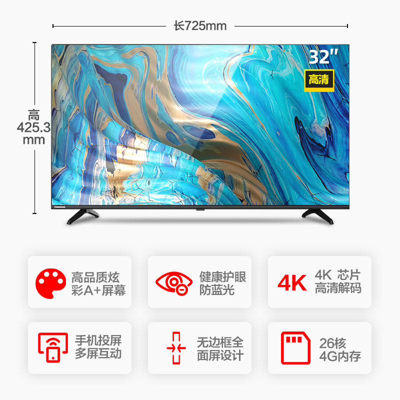 Changhong TV 32-inch 32D4PF HD ultra-thin Full Screen Internet smart flat LCD TV naughty