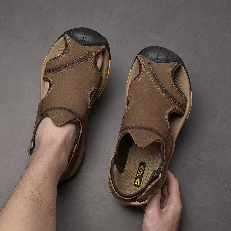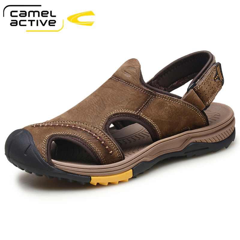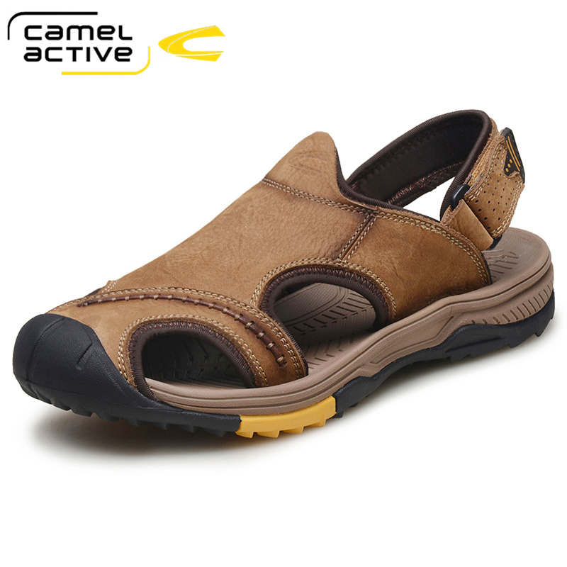 German camel dynamic summer leather toe sandals men's non-slip breathable outdoor beach shoes trend Shuoxi shoes men
