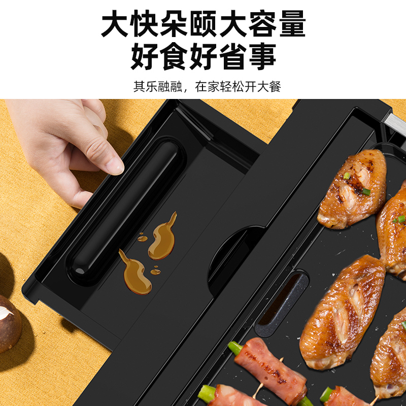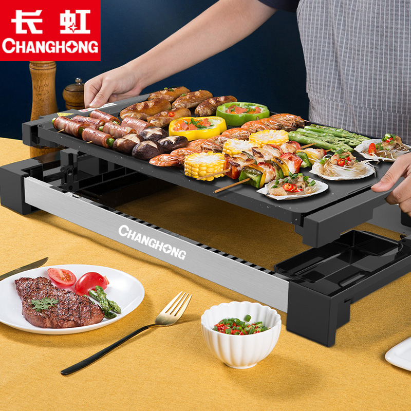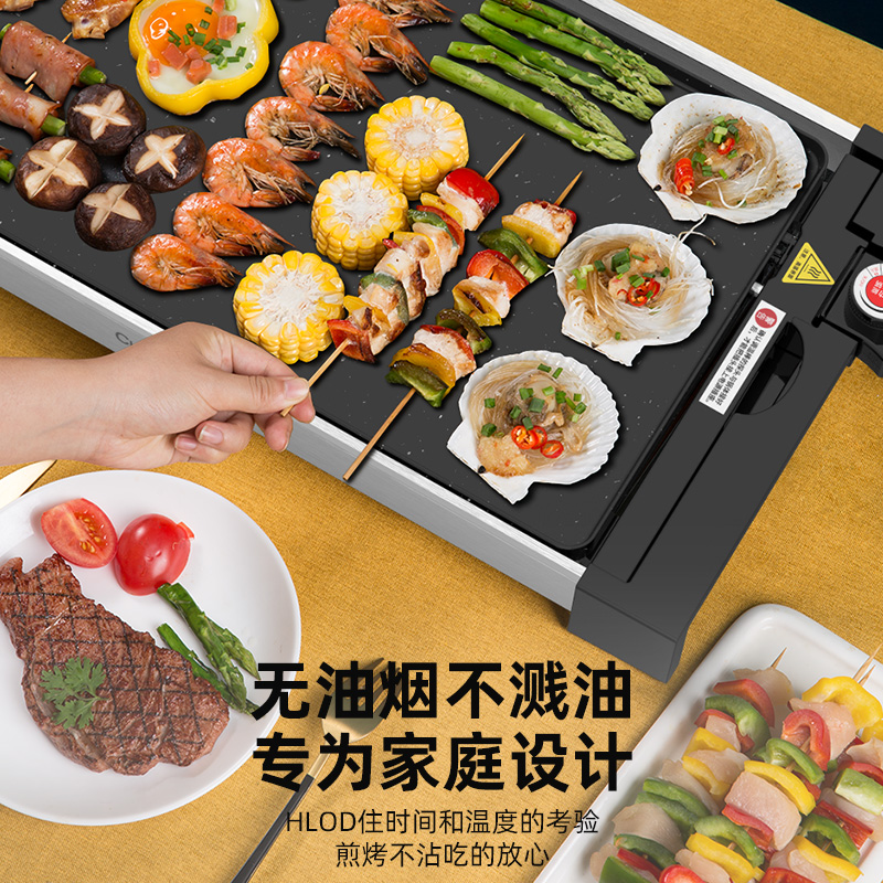 Long Iridescent Korean Style Barbecue Oven Home Electric Grilled Pan Grilled Hot Pot Integrated Pan Smoke-free and Multi-functional Rinse Baking Machine Iron Plate Burn