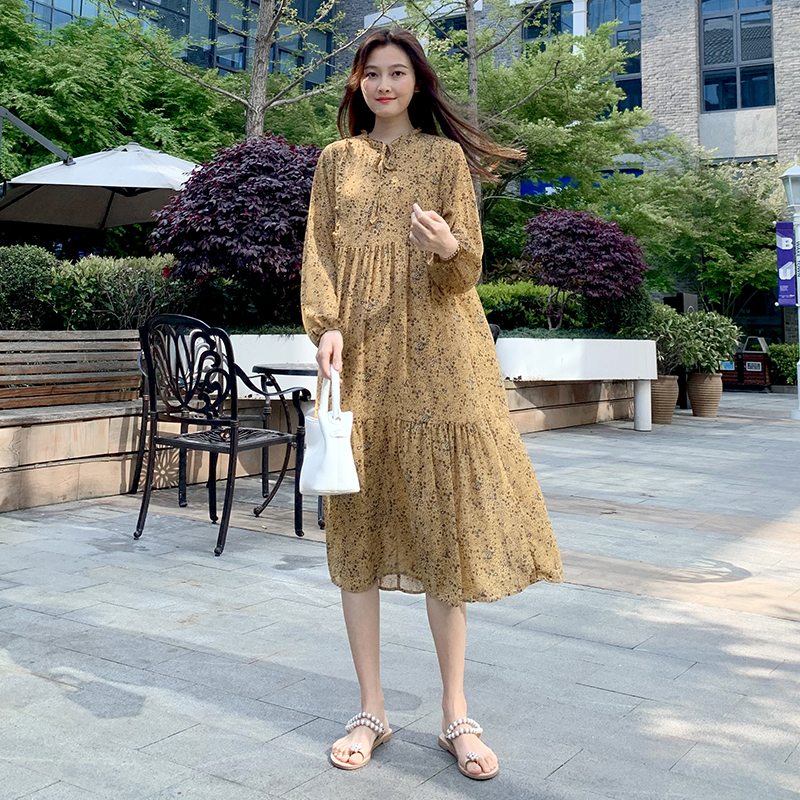 Pregnant Woman Foreign Dress 2022 Spring Dress Fashion Boomer Relaxation Polo Fairy Fairy Personality Hot spring Long version of the dress