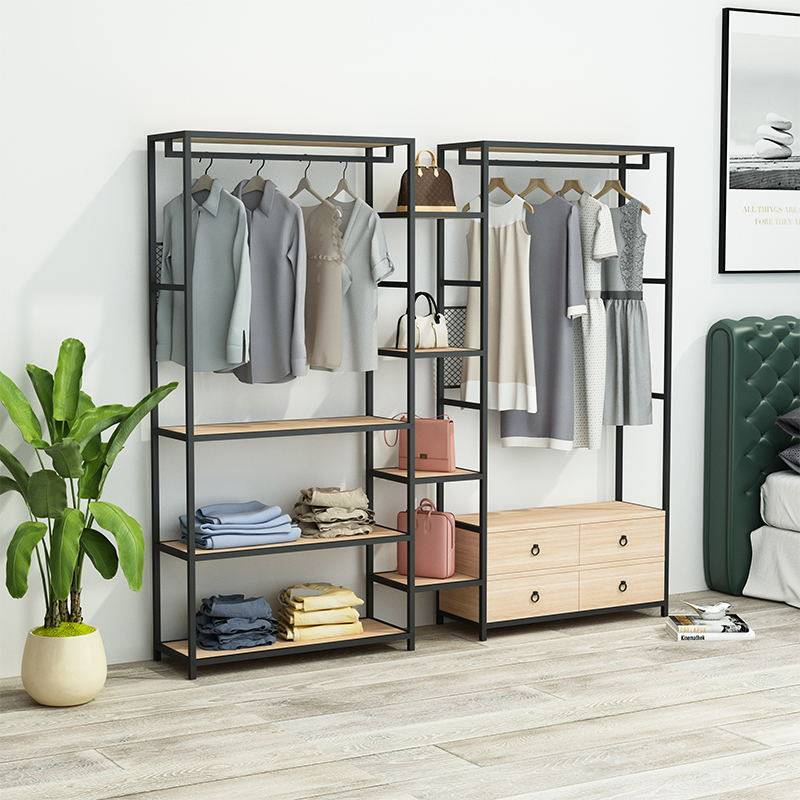 Minzi Wardrobe Open Home Bedroom Wardrobe Nordic Wrought Iron Hanging Shelf Floor-to-ceiling Storage Rack Simple