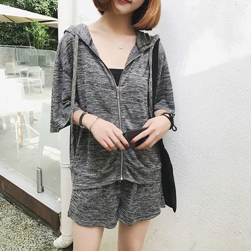 Fat sister two-piece 2020 sports suit is thin and covers the belly and hidden meat hooded vest short-sleeved t-shirt bottoming tide