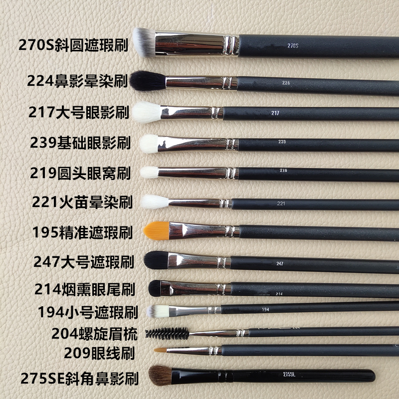 217 239 219 Eye combination 116 Blush brush 224 Nose shadow smudge brush 221 Flame smudge brush 247 Large concealer brush 217 Flat head smudge brush 2