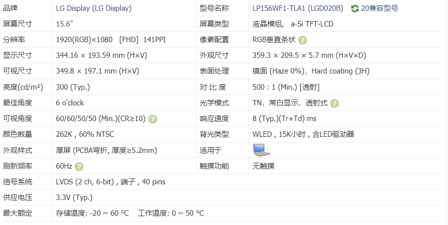 15 6 inches 1920*108015 6 inches 1600 900 wide viewing angle 15 6 inches 1366*768 narrow viewing angle