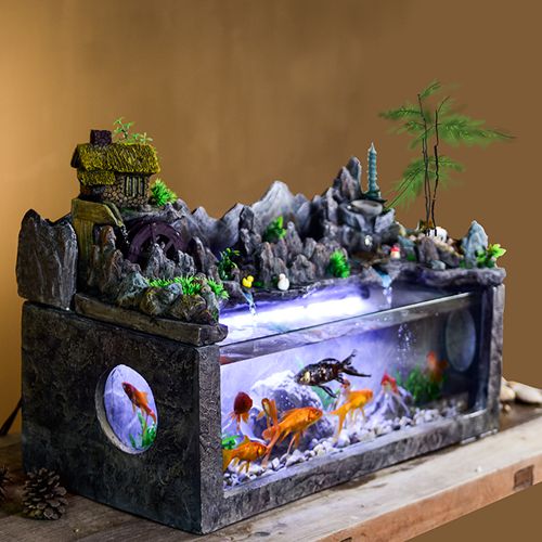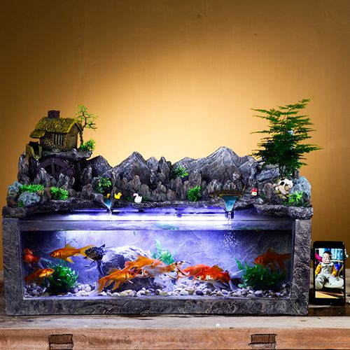 Goldfish tank aquarium Living room large desktop lazy ultra-white glass creative ecological water-free household rockery