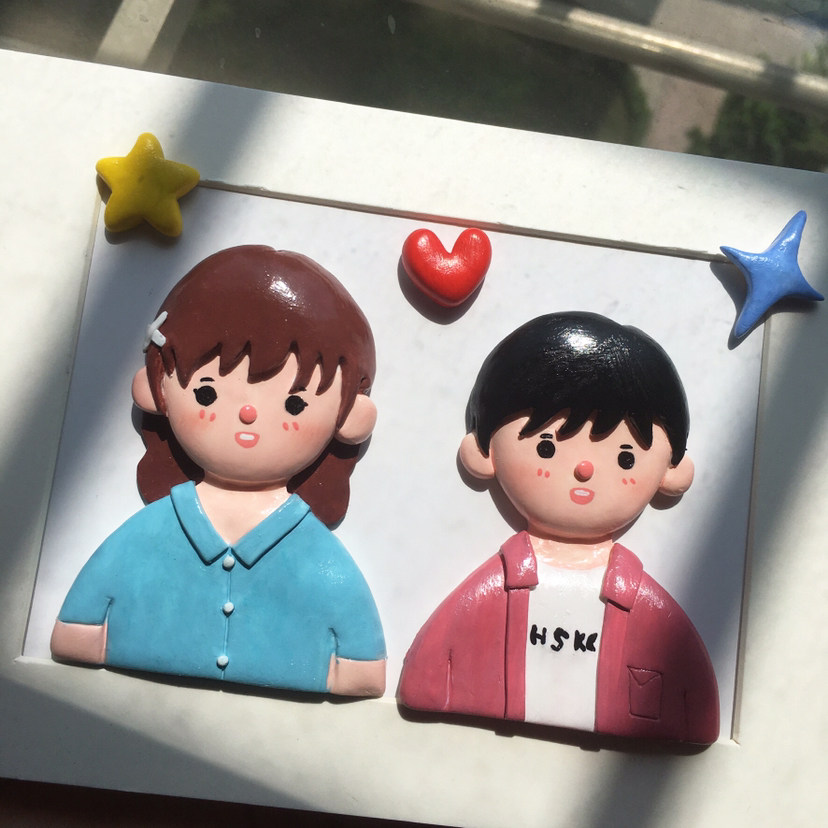 Soft pottery doll custom birthday gift male send girlfriend girlfriend Q edition handmade diy clay photo frame wedding creativity
