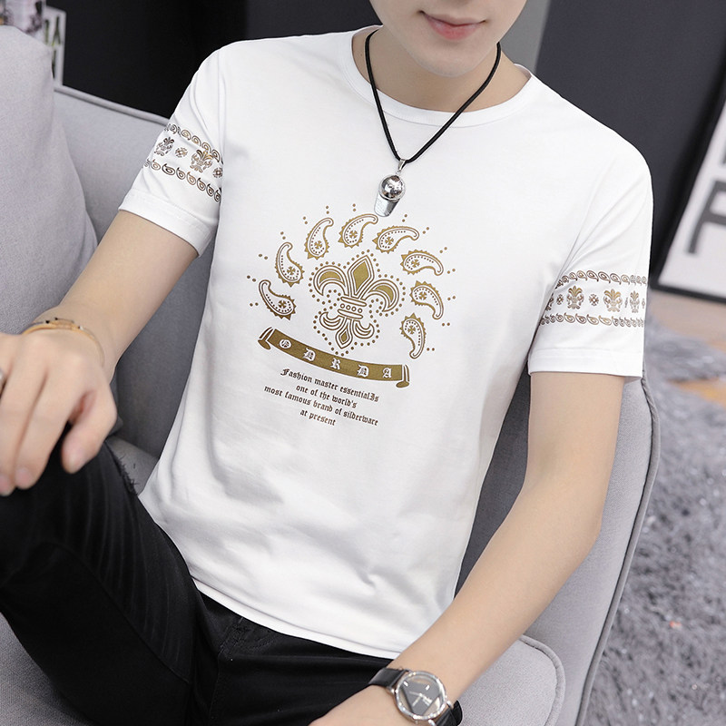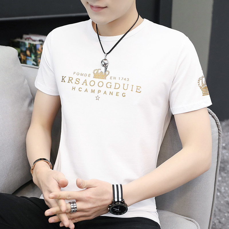 Ice Silk Short Sleeve Male Tide Korean version Trend round collar half sleeve men's 2020 new Modale pure cotton white T-shirt man