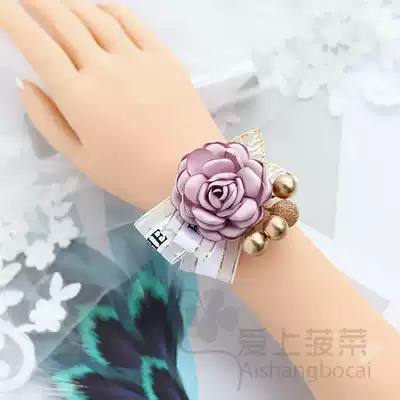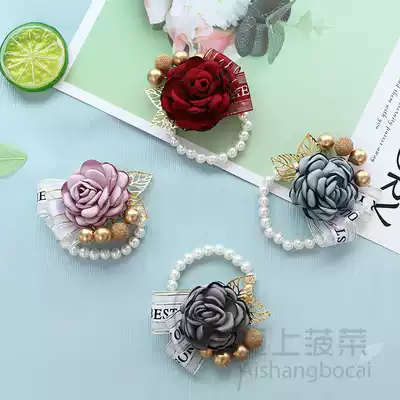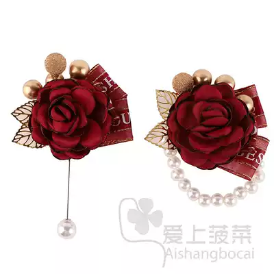 Korean style beautiful beauty of bride, wrist flower bridesmaid sister group hand flower Chinese wedding ceremony high-grade corsage brooch Red