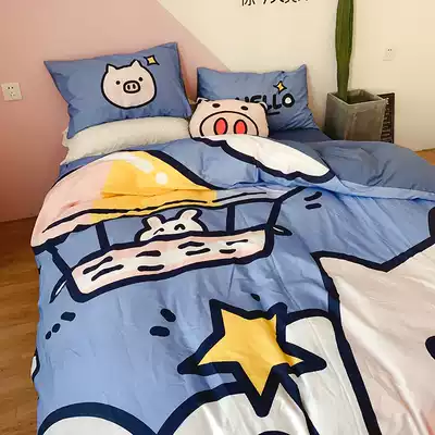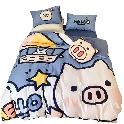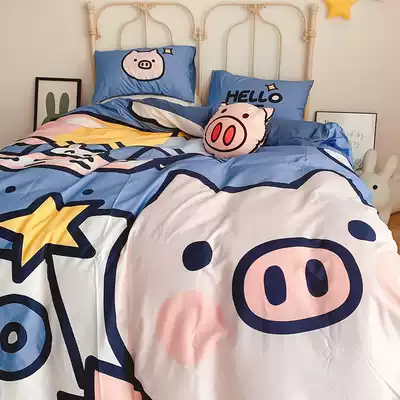 (Toyama strawberry)Cartoon cute pig bed four-piece cotton cotton three-piece bedding