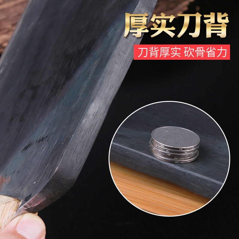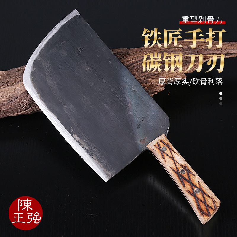 Chen Zhengqiang heavy-duty bone-cutting knife hand-forged carbon steel thickened bone-cutting knife slaughter professional bone-cutting large kitchen knife durable