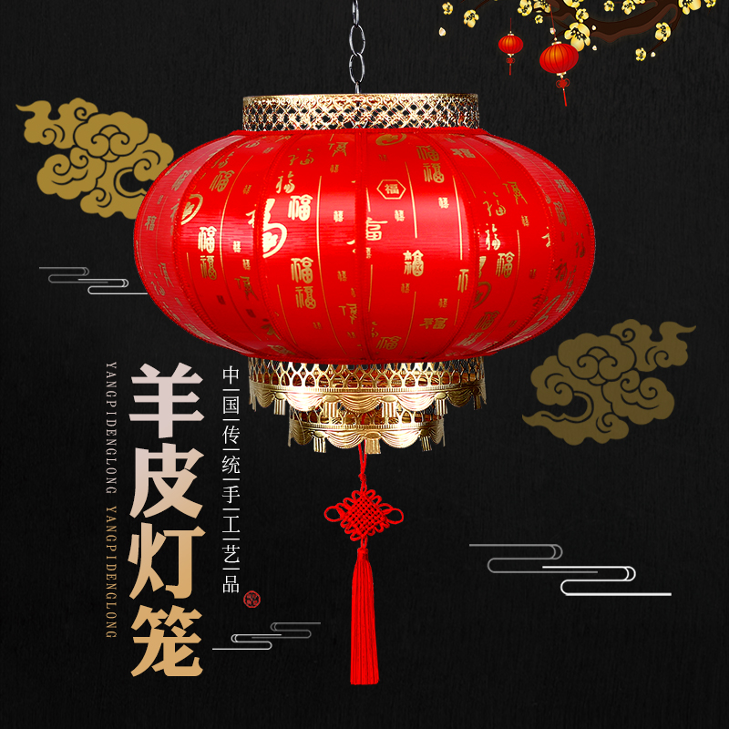 Sheepskin Lantern Round Antique Outdoor Waterproof Big Red Festival Chinese Winter Melon Baifu Decoration Customized Advertising Printing
