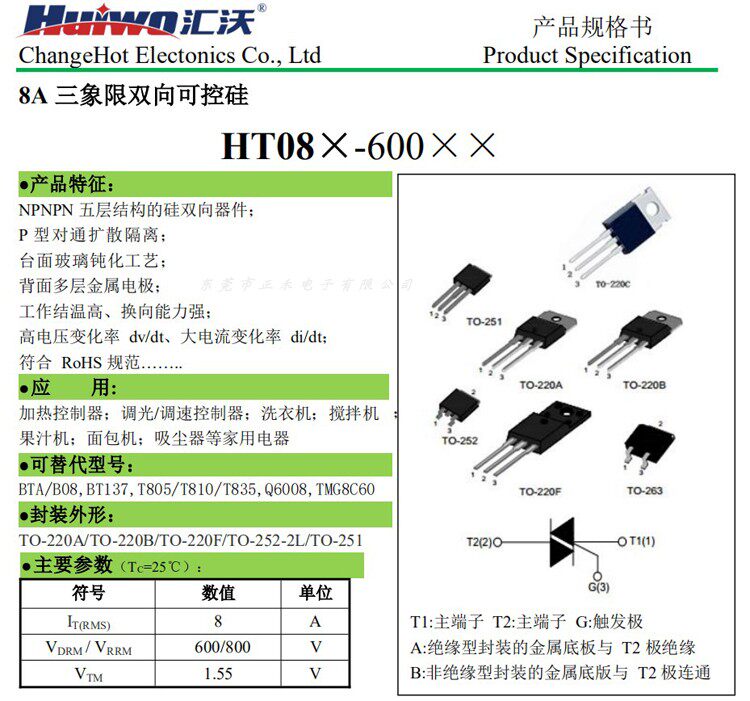 Huiwo Semiconductor Control rectifier BT137-800E 600D 8A800V 8A800V thyristor manufacturer co-import BTB08 An