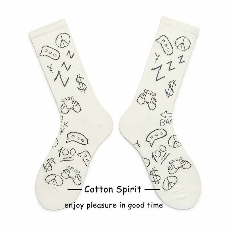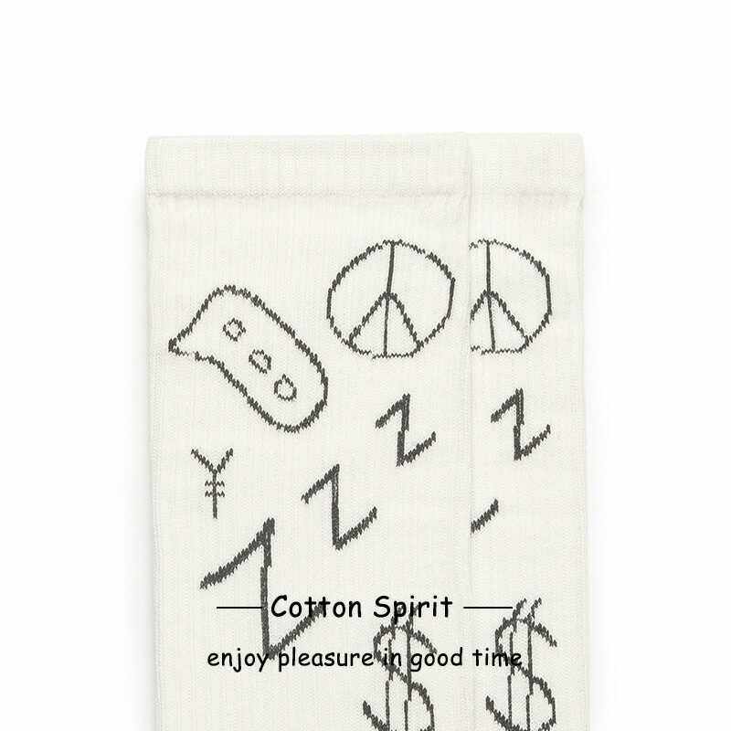 Cotton Spirituality Ins pure cotton with long heaps Sox children's street graffiti retro wind threaded long cylinder stockings couple-Taobao