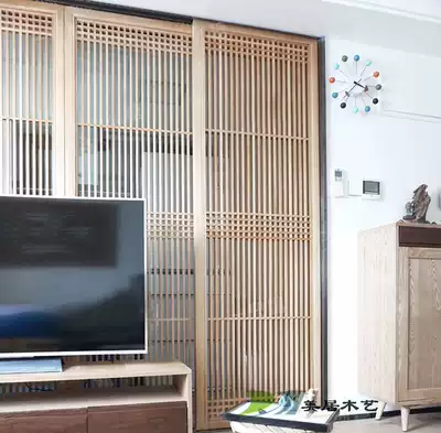 New Chinese-style Japanese-style screen partition Solid wood grille Simple modern B & B tea house Restaurant Small apartment Living room Bedroom