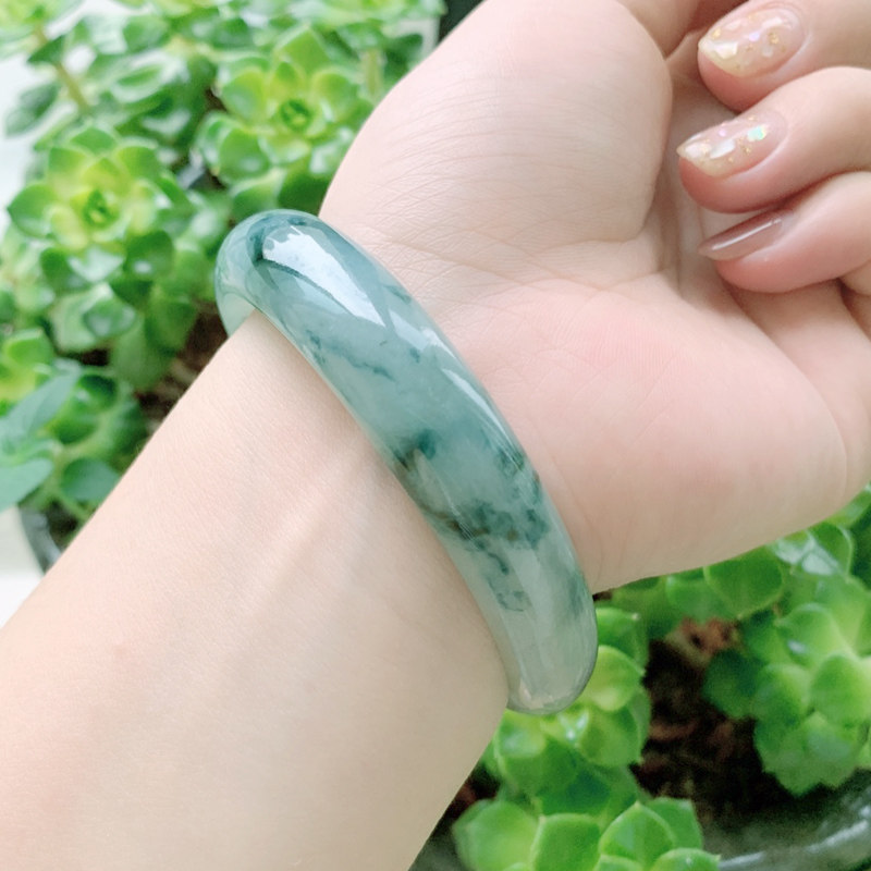 Natural old pit A goods floating flower green jade bracelet delicate with national certificate Beauty rhyme Jade bracelet live room