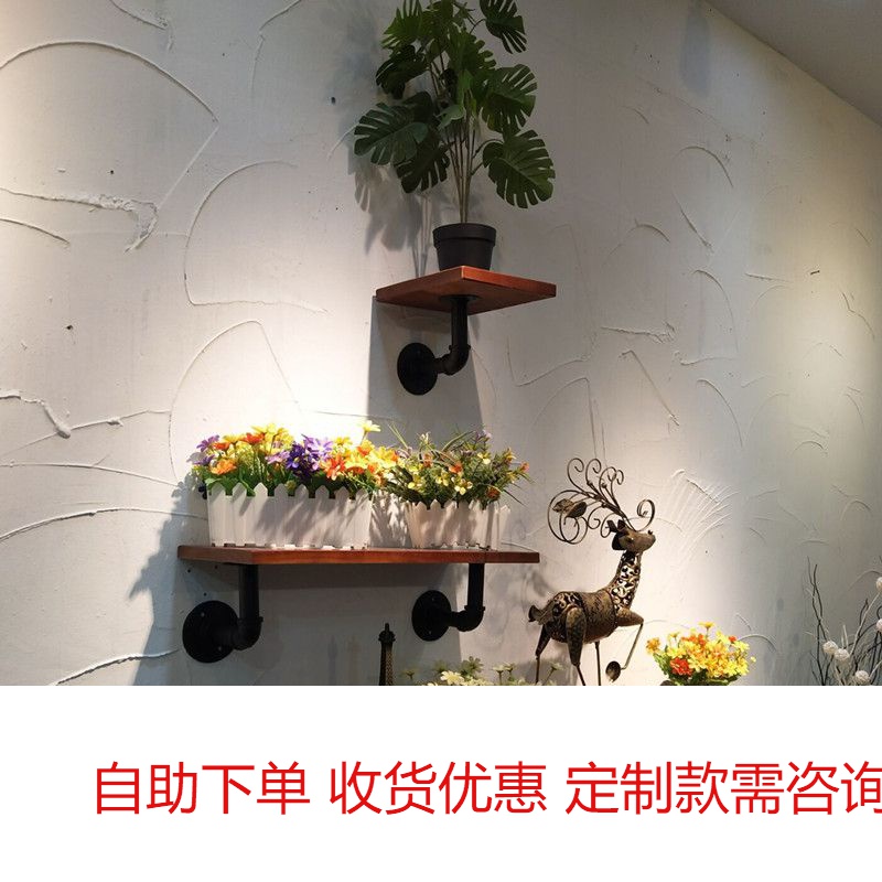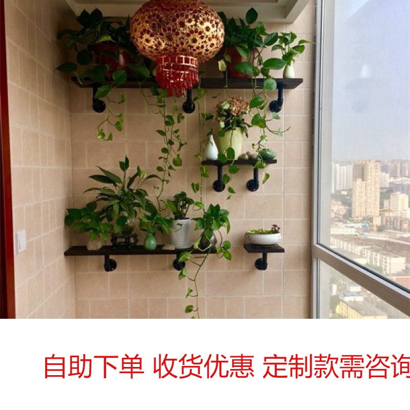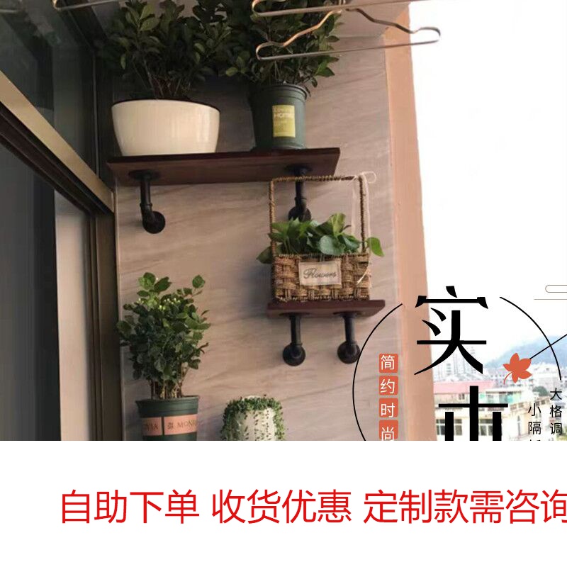 Wall shelf balcony wall solid wood partition wall hanging boutique easy to use wrought iron bookshelf decorative rack flower rack shoe rack