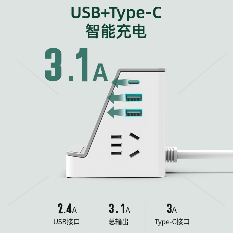 Able vertical USB socket mobile phone smart wireless charging and magic square extension cord-to-power PD protocol plug-in