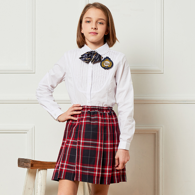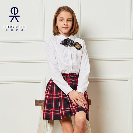 Eaton Chronicle School Uniform Girls Cotton Shirt Girl Long Sleeve Shirt White Shirt White Shirt Autumn 09C202-Taobao