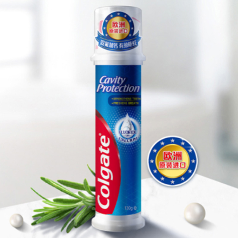 (European imports) High Dew Straight vertical anti-tooth toothpaste Fresh breath to mouth and stink Press Toothpaste 130g