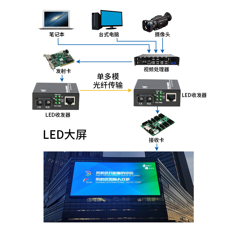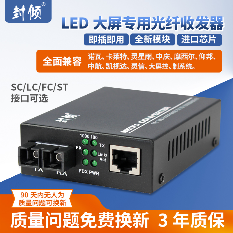 Sealing tilt LED display fiber optic transceiver single multimode sc pure gigabit 1000m photoelectric converter compatible with Nova Ling Rain Avian Mosir Spirit Faith State send receive card network port