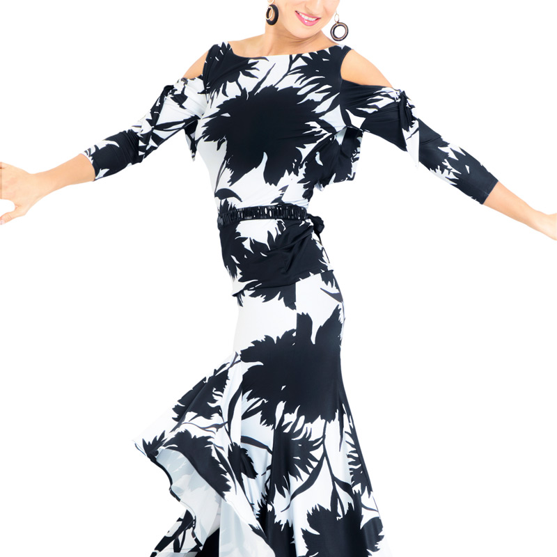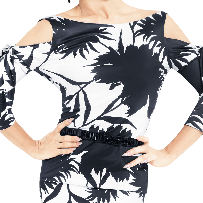 New Black Pool Dance Morden Dance Square Dance Truffle Shoulder 70% Sleeves Large Open-back Performance Practice Morden Blouse 2004