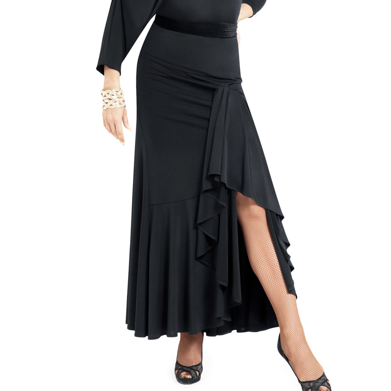 New Black Pool Dance Morden Dance Square Dance Large Skirt Hem fork Hip Half Body Skirt Practice Performance Dress 2003