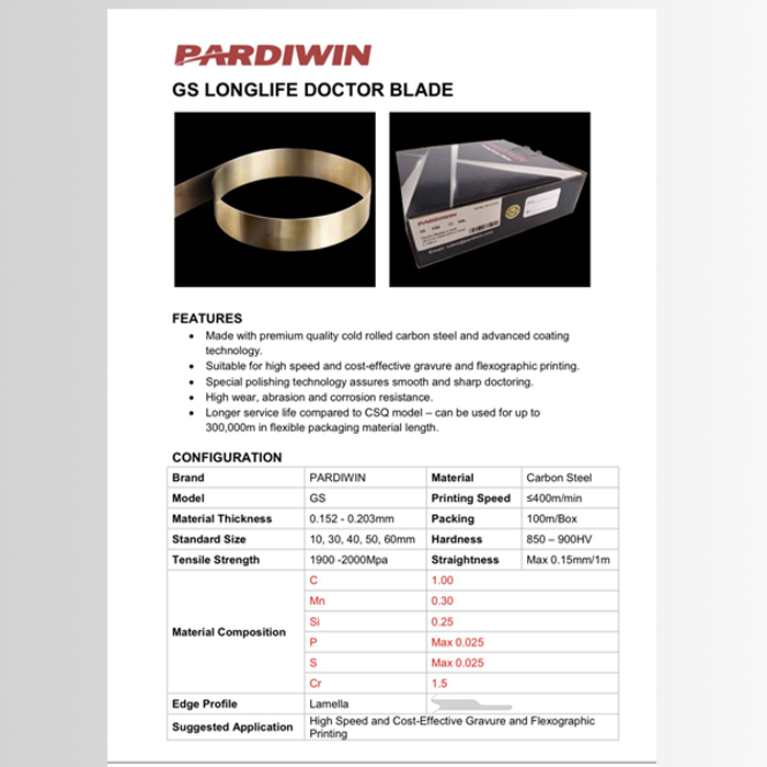 Ink scraper gravure flexo printing scraper rust-free ink scraper PARDIWIN long-life coated gold knife