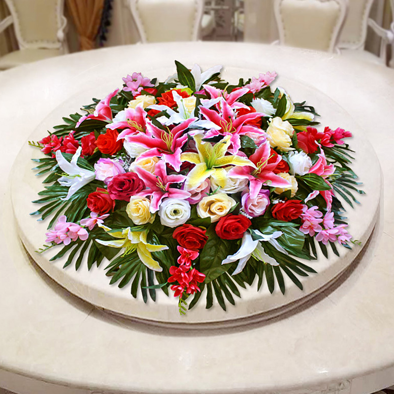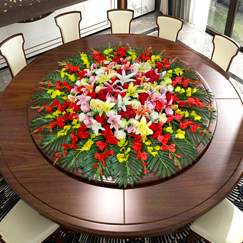 Hotel restaurant large round table flower fake flower turntable simulation flower tabletop floral decoration decoration flower arrangement